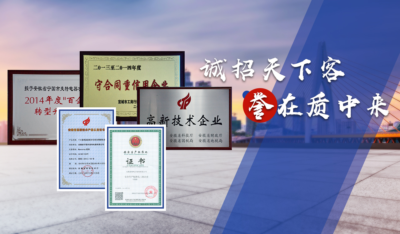 安徽麥特電子股份有限公司是專業研制電容器的高新技術企業。公司成立于2006年,注冊資金1000萬元,坐落于國家級寧國經濟技術開發(fā)區河瀝園區。公司致力于金屬化薄膜電容器和微波爐用高壓電容器的研發(fā)、生產及銷售。